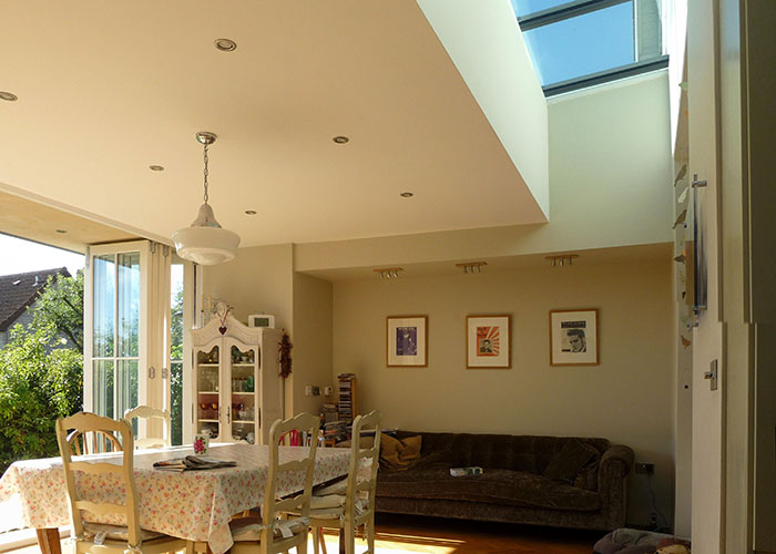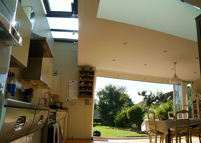 A full width extension can make the existing rooms very dark. One solution is to use roof lights, which allow almost four times as much daylight into the building as vertical windows and greatly reduce the need for electrical lighting. We use our computer software to check that there aren't going to be problems with glare, and to calculate the effect on the temperatures and heating in the building.