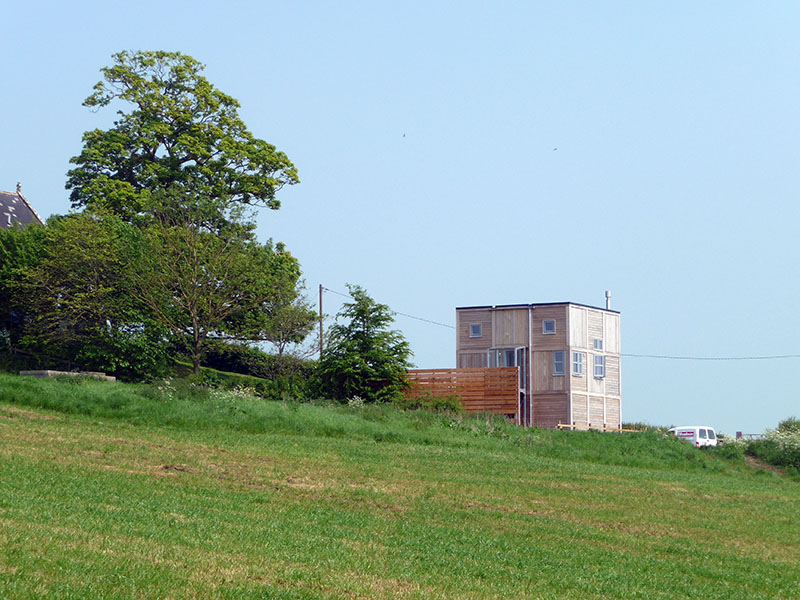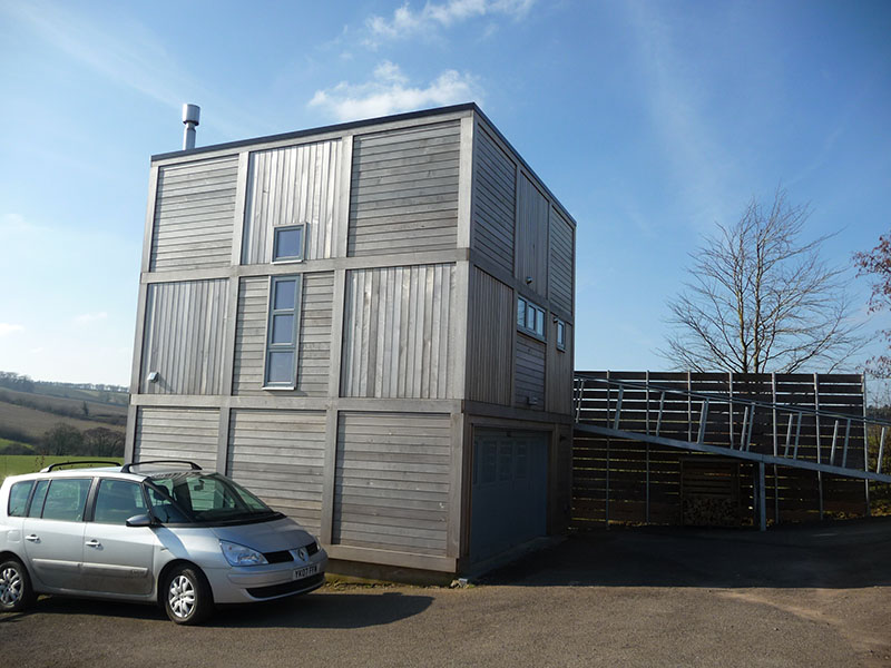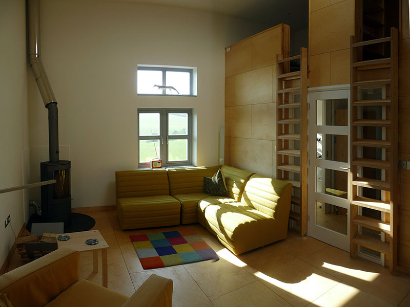The accommodation would be used 'occasionally' and it would be wasting energy to keep it warm all the time. Of course it was very well insulated, and well sealed. The solar gain alone would keep it warm for much of the year, but when more heat was wanted it needed to work quickly. So we made it thermally very light weight. When the wood burning stove is lit the air warms up quickly because the walls don't absorb all the heat energy.